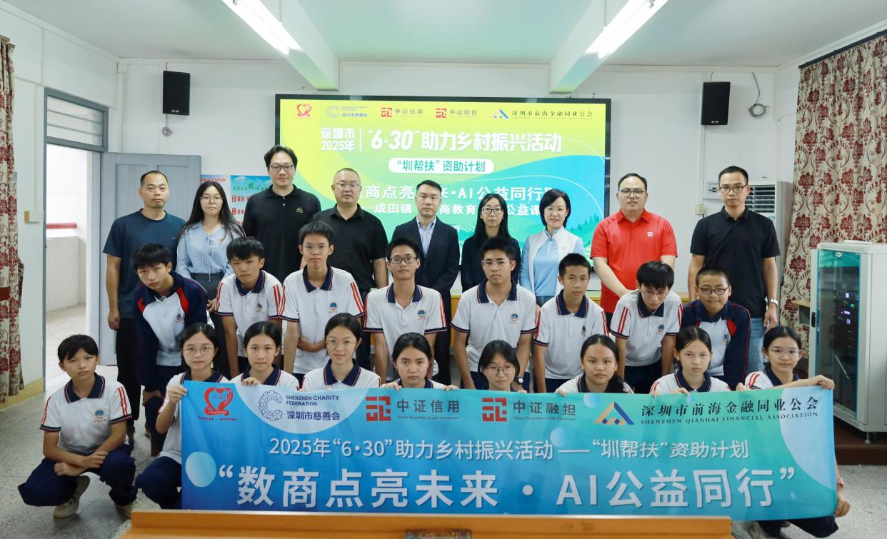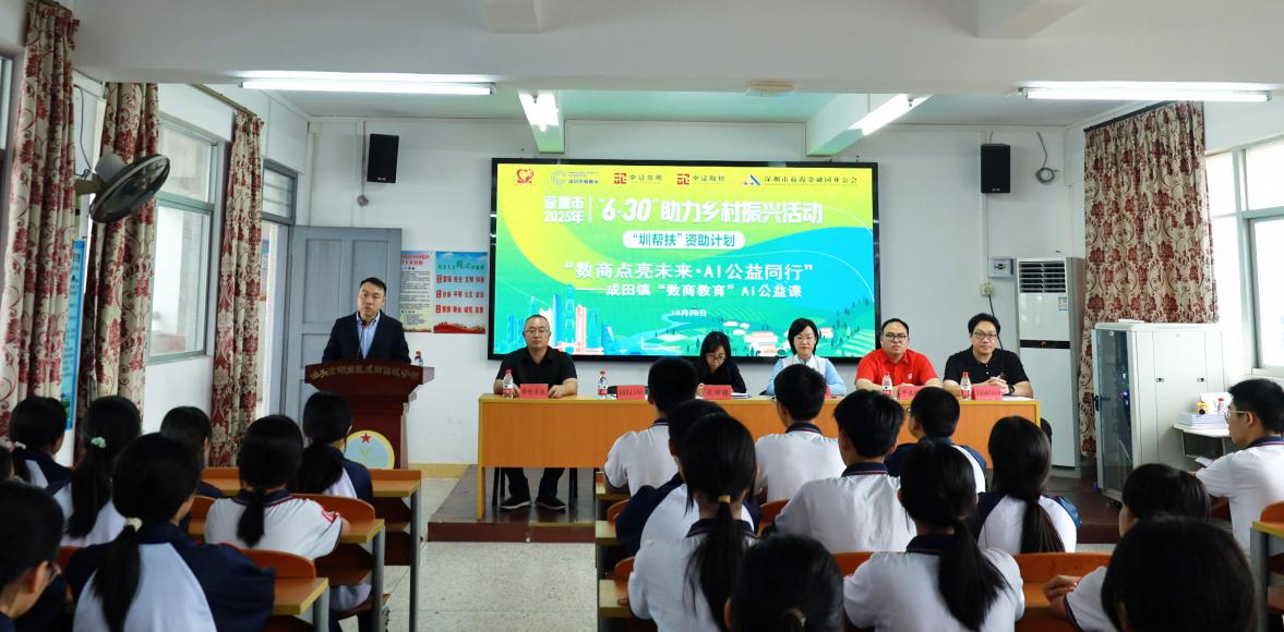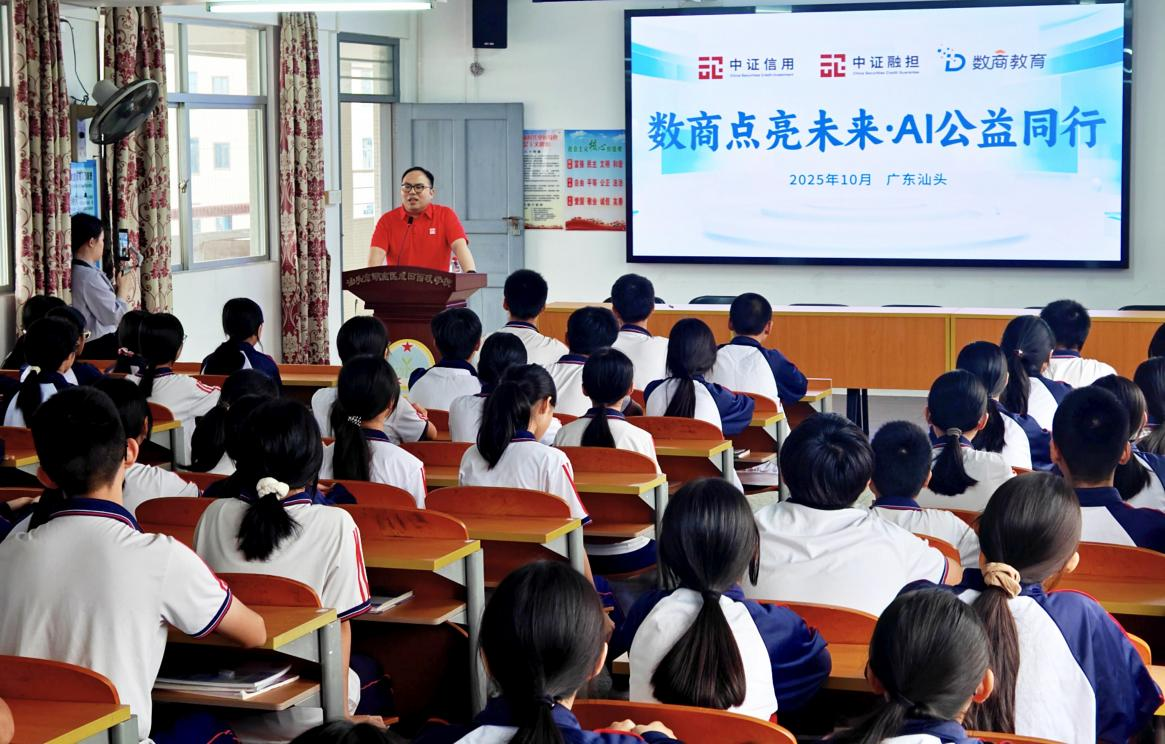 2025年10月28日,中证信用及子公司中证融担旗下“中证XIN公益”团队联合深圳市前海金融同业公会(以下简称“公会”)“圳帮扶”项目团队,走进汕头市成田镇西岐学校开展“数商点亮未来·AI公益同行”为主题的“数商教育”AI公益课与图书、文具捐赠活动。双方以公益为纽带、以行动践初心,切实为乡村教育发展注入数字时代新动能,助力乡村人才振兴。本次活动得到了成田镇副镇长周崇赟、驻成田镇工作队队长兼镇委副书记李鹏,以及成田镇西岐学校负责人的大力支持。